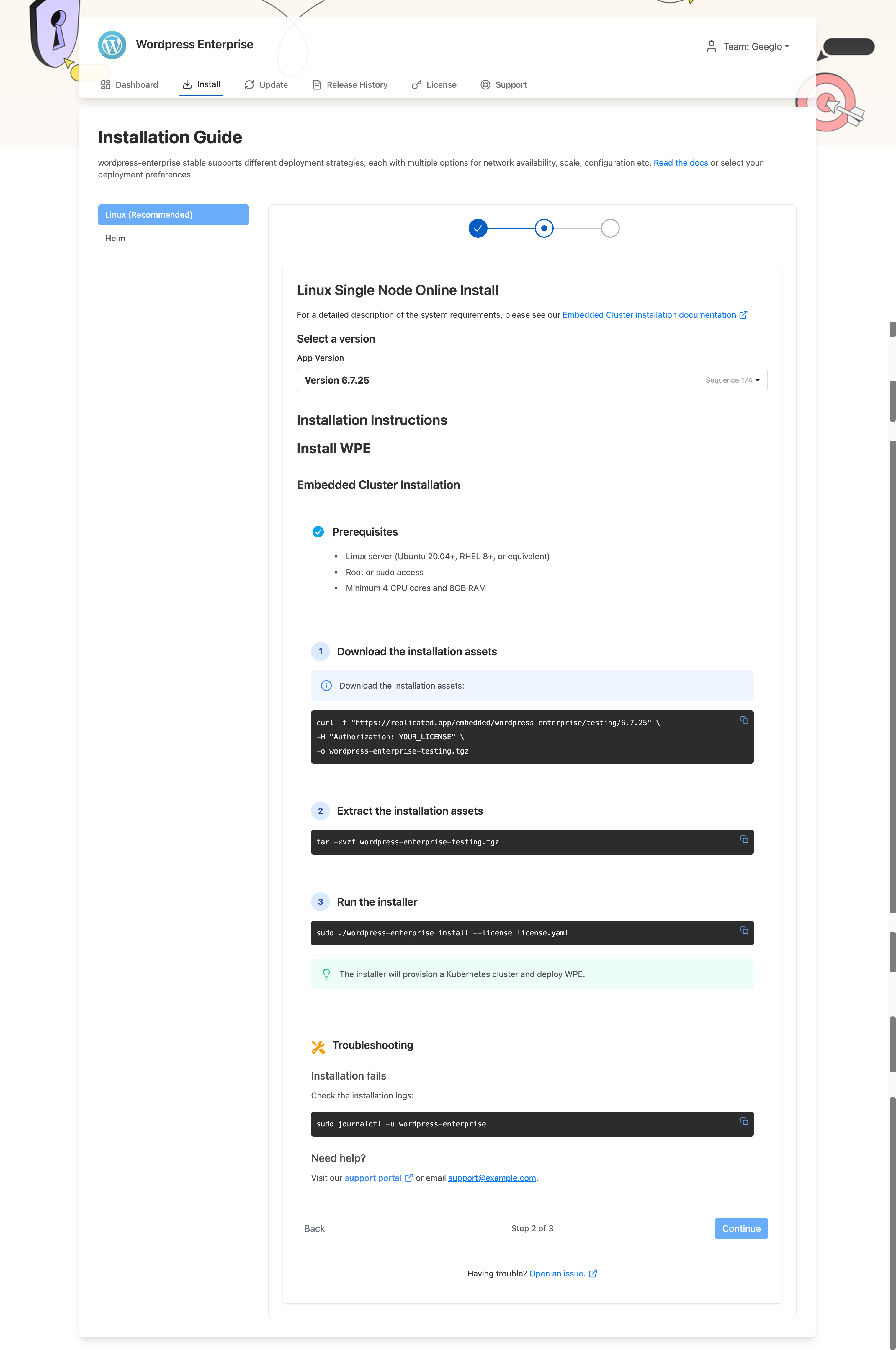 You can also write custom, channel-specific instructions. This is useful if you need to provide unique installation steps for any of your release channels. For example, you can add custom steps, rename steps or sections to match your documentation, include videos or diagrams, and more.